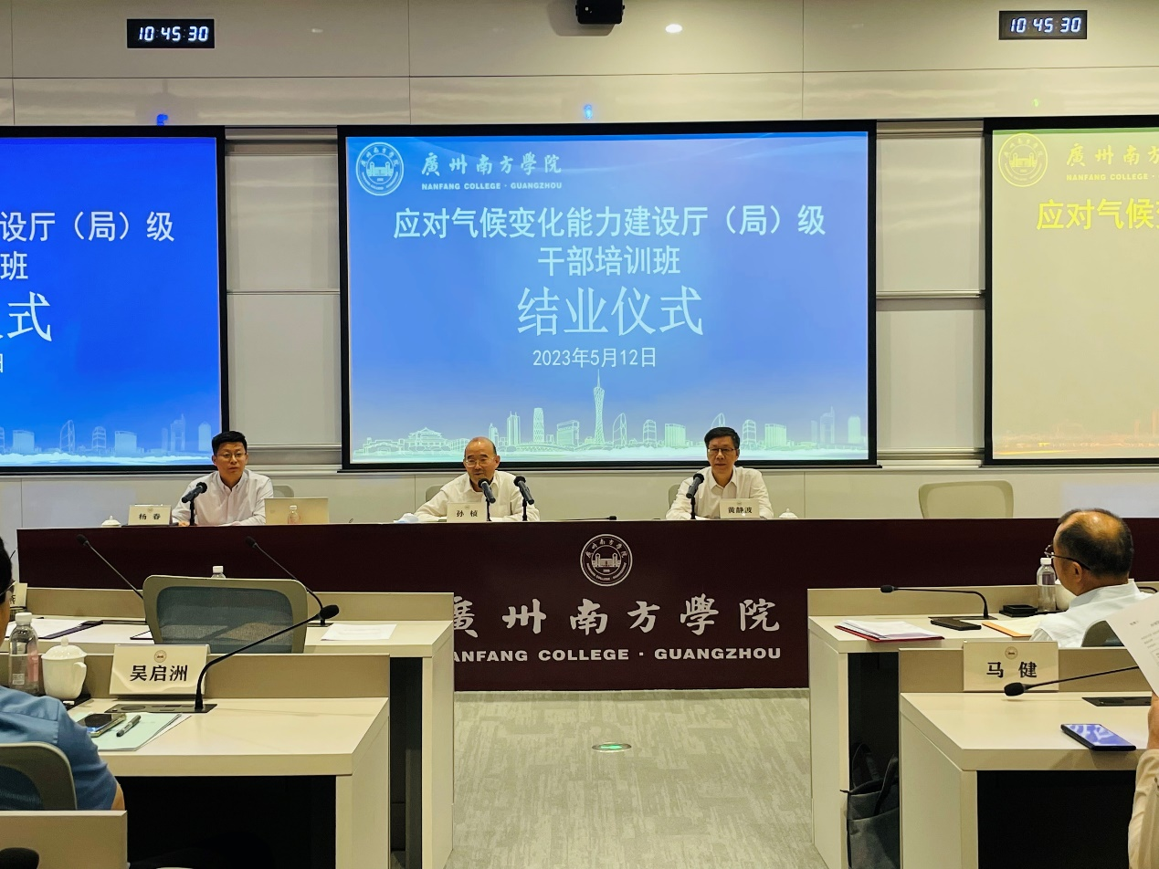 5月8-12日,由生态环境部主办、广州南方学院承办的2023年生态环境部“应对气候变化能力建设厅(局)级干部培训班”在我校顺利举办,生态环境部应对气候变化司李高司长、孙桢一级巡视员分别出席了本次培训班的开班和结业仪式,黄南松副校长、黄静波副校长分别陪同出席。